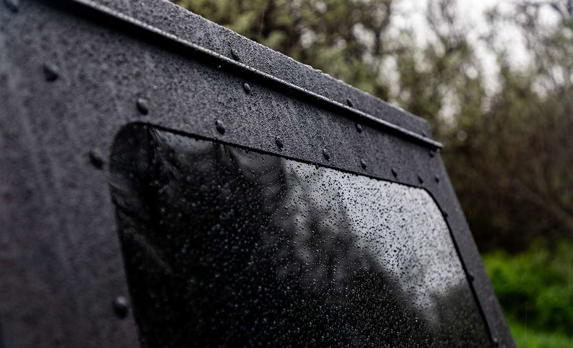 Water-shedding design with waterproof hinge directs water away from the pickup truck box. Strategically engineered seals keep elements out when installed properly.
