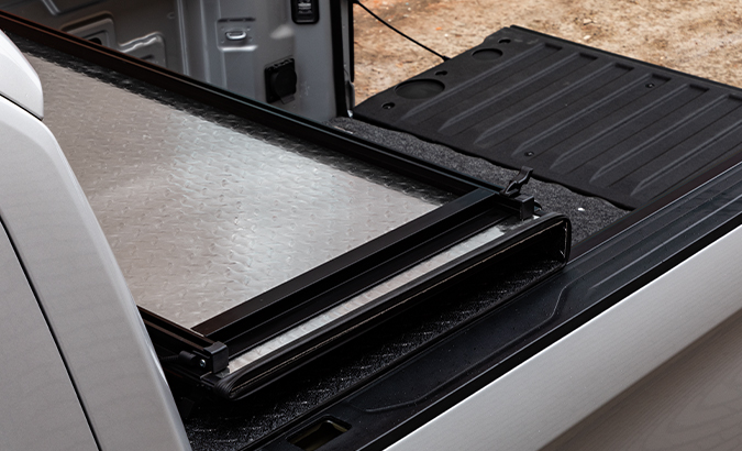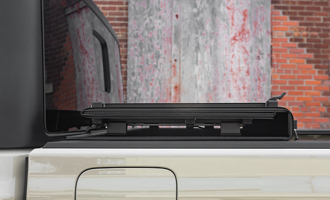 LOMAX® Folding Hard Covers enhance the look of your pickup with a low profile design while maximizing protection. This lightweight hard tonneau cover delivers strength, security and style. Easy to operate and offering a simple one person installation and removal, you can do more with less hassle. Strong panels with durable, watertight hinges are available in multiple finishes to perfectly complement your truck and OEM bed caps. Extruded aluminum channels under the panels keep the hard truck bed cover rigid while reducing weight. The flexible rubber seals, automatic ten point locking system and limited metal-on-metal contact all work together to reduce noise and vibration for a quiet ride. The LOMAX® Folding Hard Cover is ready for anything.