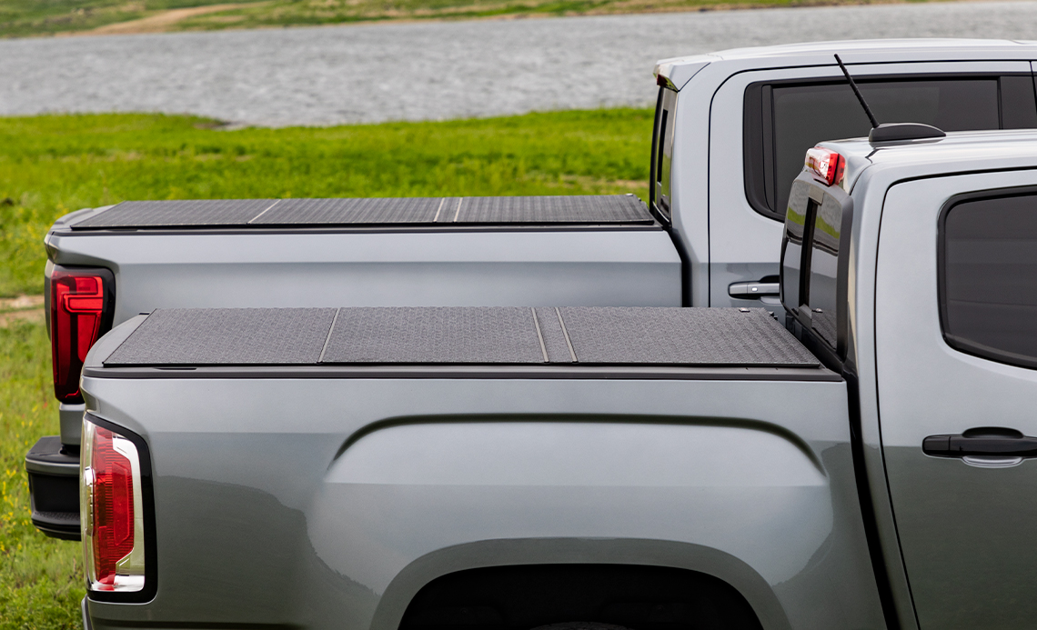 Examine the LOMAX® Black Diamond Mist Hard Covers in our photo gallery on a variety of trucks. Whether you are on the clock or off, protecting your cargo and truck bed is of utmost importance. Designed to fit all your lifestyle needs, the LOMAX® Hard Folding Cover is engineered to be ruggedly durable with premium quality components. While adding style to your truck, the LOMAX® Professional Series has the strength to take on any challenge.