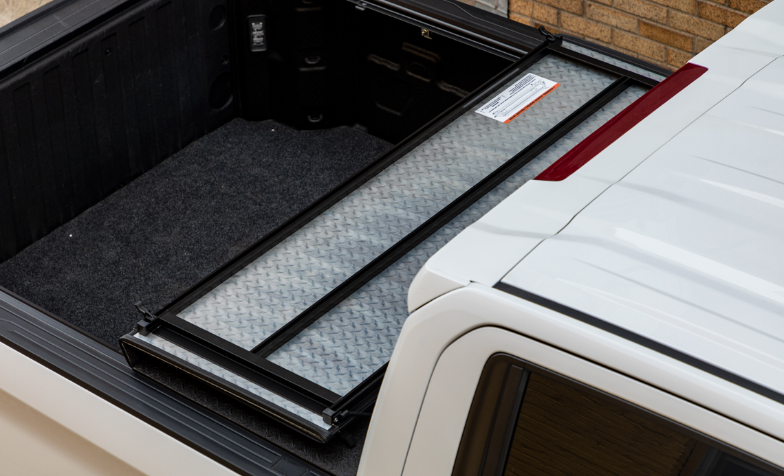 The LOMAX® Professional Series is anything but ordinary. A low profile design and superior protection redefine industrial versatility. Additional extruded aluminum channels increase the durability of each coated diamond plate panel, making LOMAX® Professional Series stronger with minimum added weight. Protect your gear with an automatic latching system while weathertight seals, durable hinges and a water-shedding design ensure your truck box remains dry without the need for gutters and drains. Complement your pickup with this unique hard tonneau cover and watch heads turn. One person can easily install, operate and remove this hard tri-fold cover. All the capabilities you need and expect, LOMAX® Professional Series is redefining rugged.