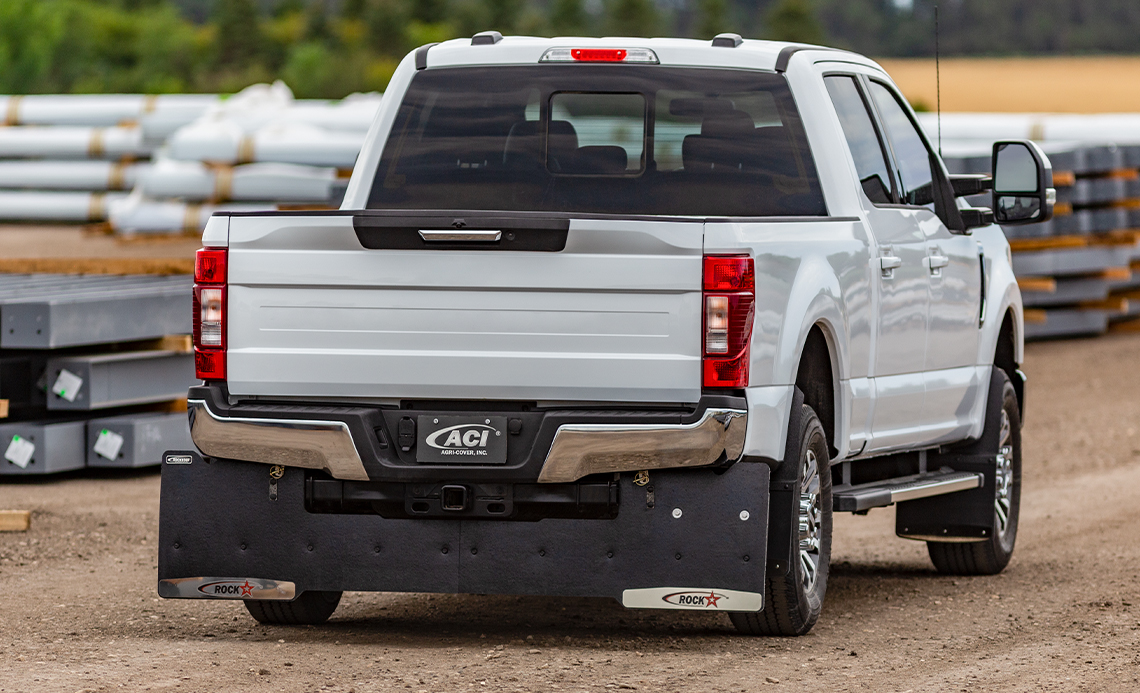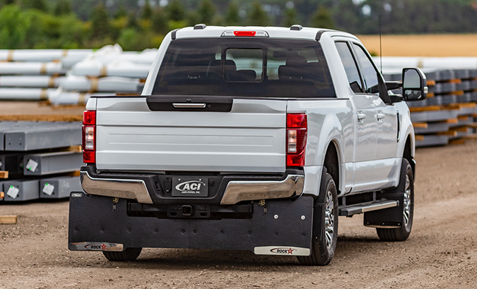 Tow like you mean it! ROCKSTAR™ Commercial Tow Flaps full width coverage is ideal for dually trucks and HD pickups. The model specific design follows the contour of the truck for ultimate protection, while the extra thick rubber flaps fasten together without drilling for a quick install. Easily remove and reinstall in minutes with linch pins. ROCKSTAR™ Commercial Tow Flaps will make everyone stop and take a second look.